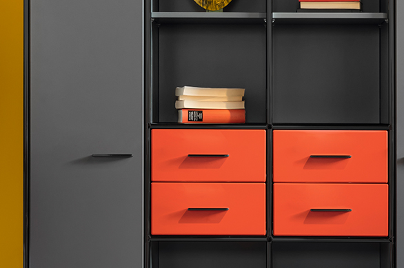 这款模块化储物柜可以根据您的需求自由设计:柜门、抽屉、层架与拉篮均可进行个性化配置,灵活添加于所需位置。为您提供充足的收纳空间,轻松收纳各类日常用品。
