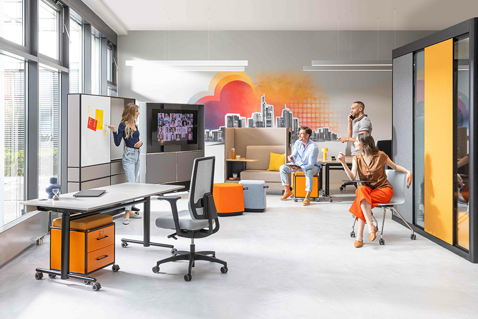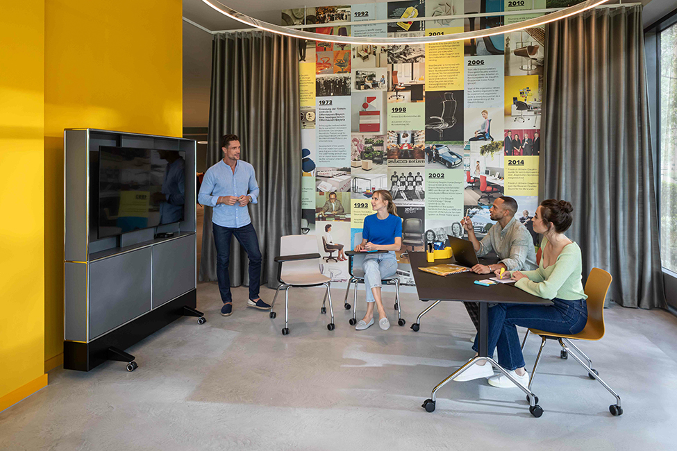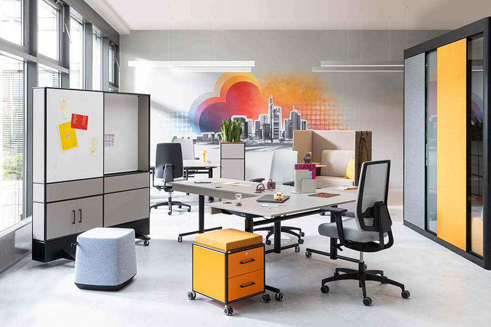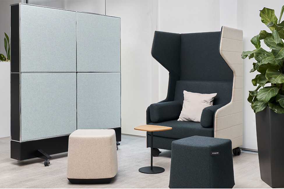 轻松实现迅捷办公。Bosse的模块化空间系统家具可以为您打造前所未有的灵活办公环境,这些模块现在也可以作为带脚轮的移动多功能隔墙使用。