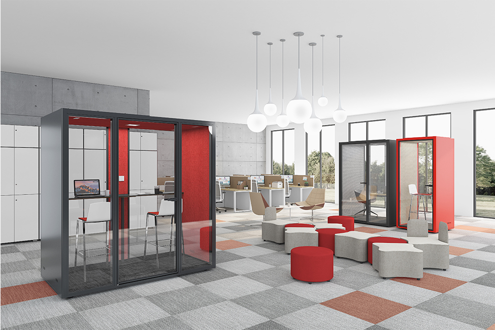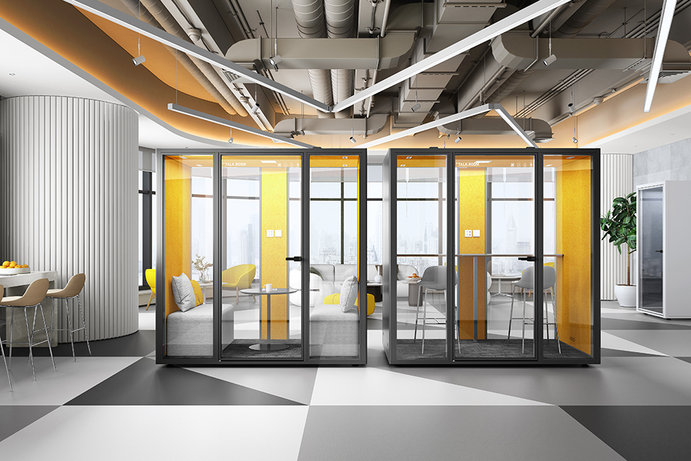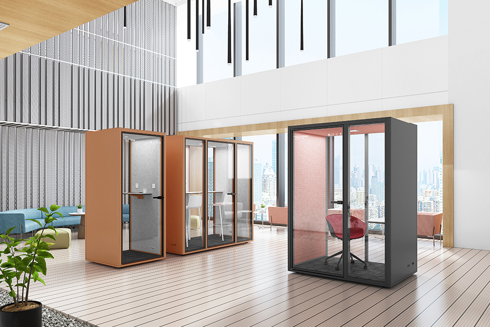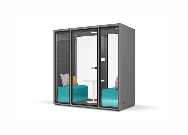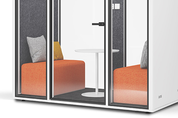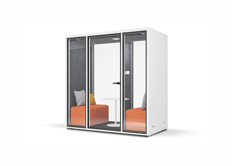 除了满足个人工作需求的单人电话亭以外,也有适合团队交流的双人静音舱。具备休闲、交互、共享、沟通等属性的TALK.ROOM Duo双人静音舱轻松容纳两个人的空间,可随时进行洽谈、小型会议、短暂面试等,为小型团队进行创造性工作及头脑风暴提供完美空间。
