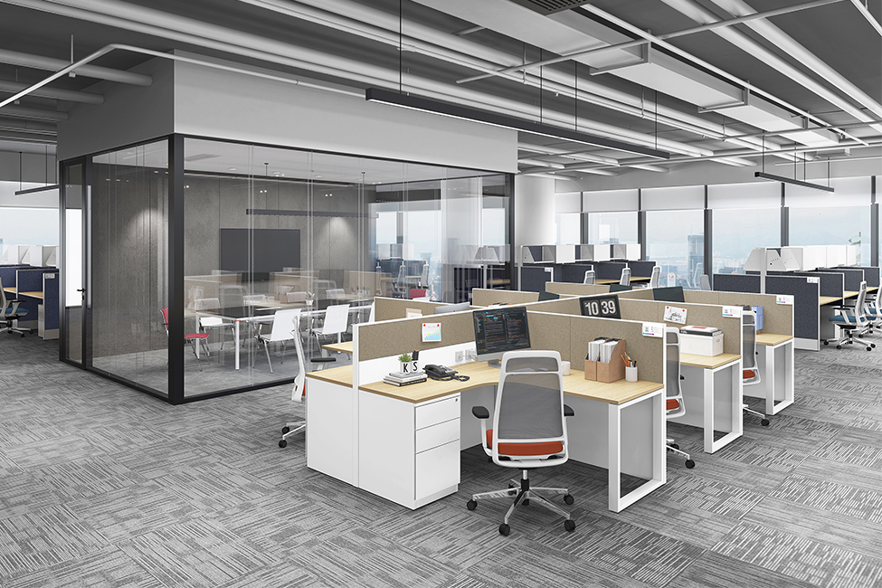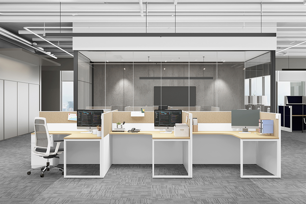 S系列的屏风结构通过横梁和立柱实现屏风挂板的自由组合,主要通过锁台扣和大托臂连接屏风立柱用于支撑桌板;连接方式包含一字型、高低型、L型、T型、X型、Y型(仅适用于S4系列)。