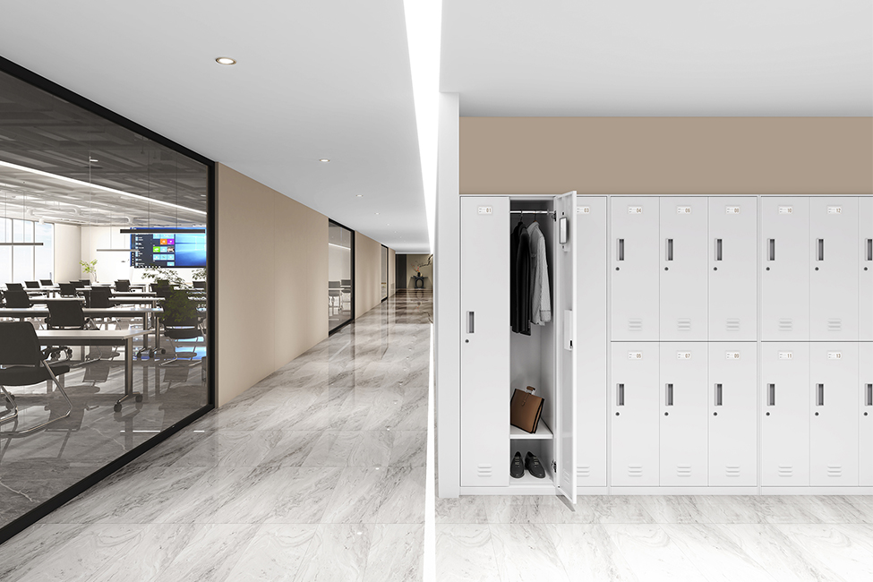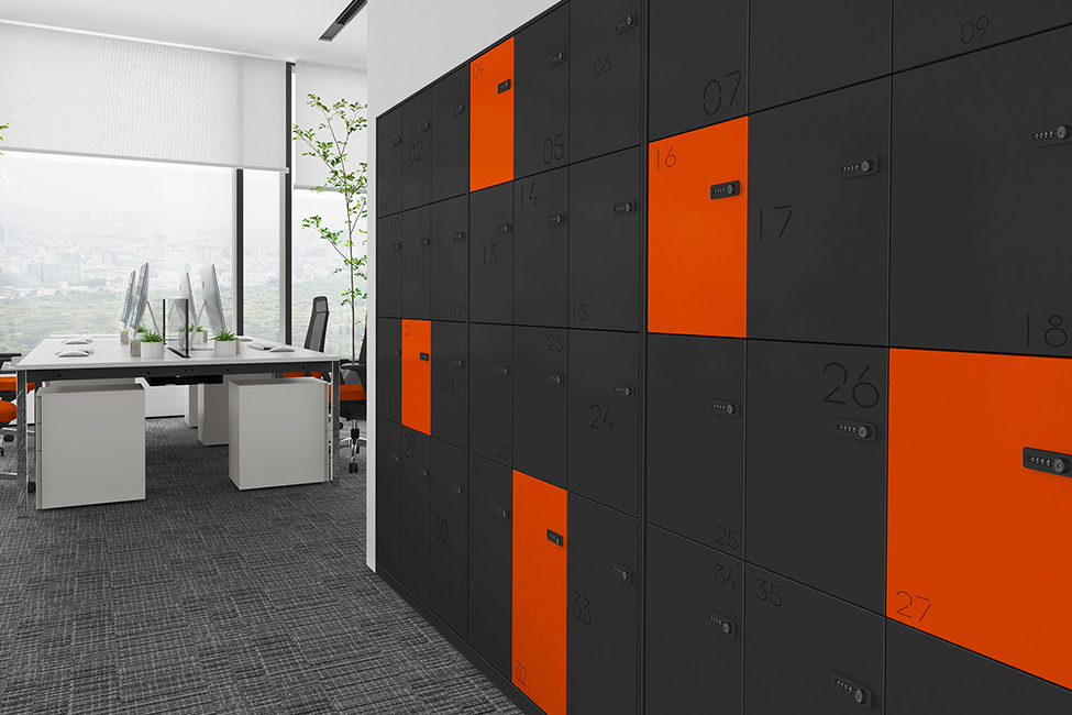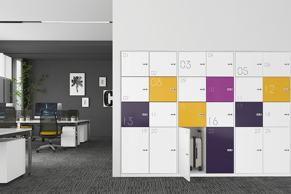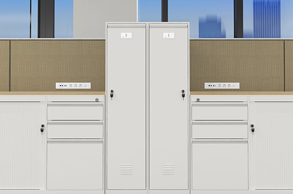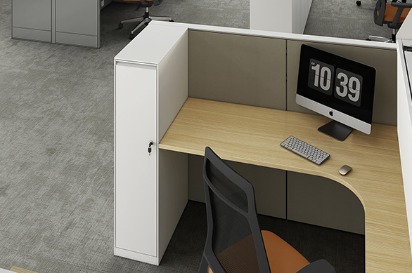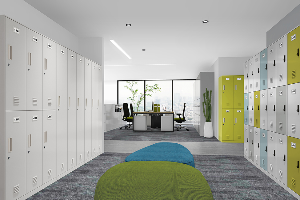 储物柜可实现个性化定制:每格空间可设计为大小不一,以满足不同的存储需求;可配置信箱式门板,时刻投递文件;门板可设有装饰冲孔,有利于柜体内部空气流通;自由搭配色彩,使柜体更具设计感;多种安全锁具可选,为个人储物的安全性和隐私性层层加码;柜体内部含有功能性配件,储物更便利;另外,上空格的设计可轻松放置小物件、书籍等,充分释放工作位的存储空间,保持工作位桌面整洁。