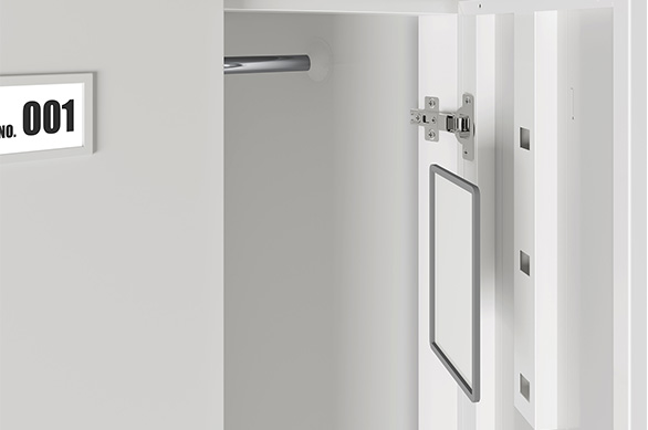 DEEP.10 locker分为储物柜与更衣柜两类,使用方式多样,可独立可结合。具有大容量管理储存、多规格收纳、承重力强等优点,这也是它适用于各种不同空间与环境的关键因素。每个柜门都配有独立锁具,储物更放心;内部配置多款功能性附件,提高空间利用率与储物的便利性。当工位更衣柜与屏风工作位组合时,柜体侧面可焊有L型角码,用于支撑桌板,使得工作位与更衣柜完美结合。