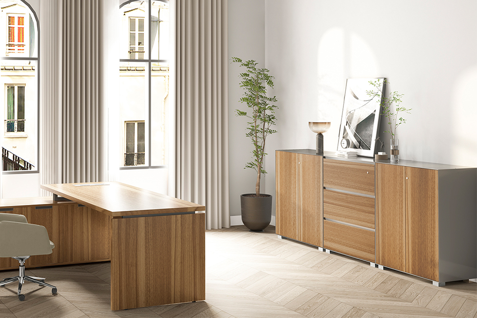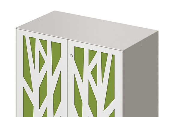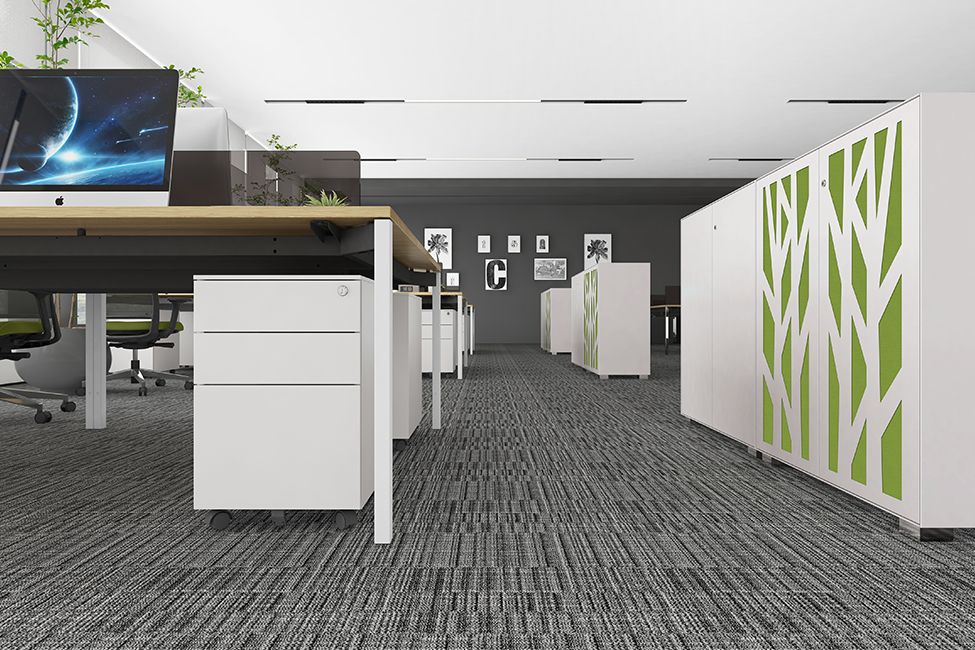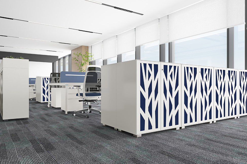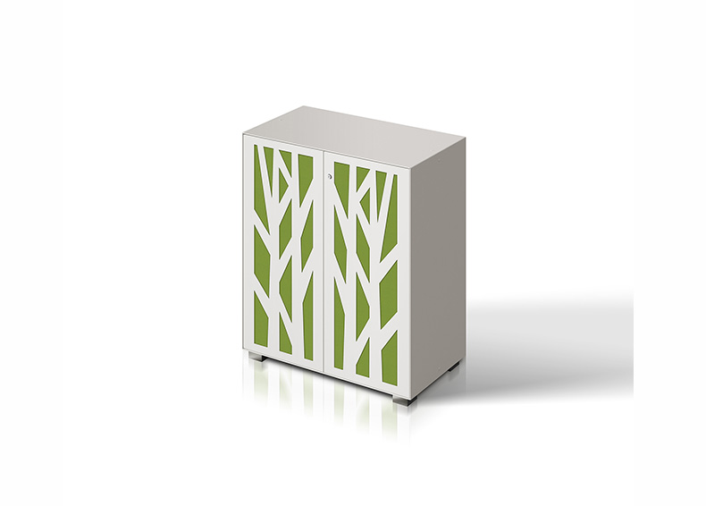 FOLIO系列为独特的拆装结构,能够实现快捷安装;模块化设计也是它的一大特点,应用方式灵活多样,重新定义办公空间布局。最引人注目的就是FOLIO的超薄边框,钢板几乎达到对折效果,可视厚度仅有4mm。柜底配有电镀方脚,以及门板的设计元素多样,增添柜体设计感。装饰门板使用激光雕刻图案,再采取钢板蒙布的方式,为办公空间增添一丝趣味和活力。