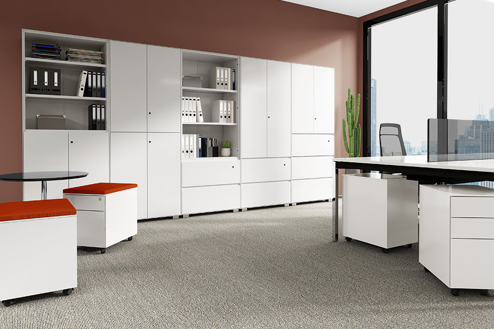 EVER系列整体为高品质钢板精铸,外形伶俐精巧,经久耐用。活动柜桶的顶板可添置软包座垫,丰富柜体色彩以外还能提高使用者坐上去时的舒适度。
